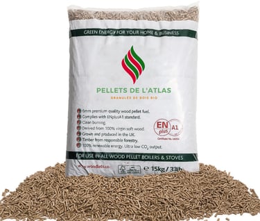 Les granulés de bois Pellets D’Atlas® sont disponibles en sacs de 15 kg pour l’alimentation manuelle des poêles et inserts à granulés de bois. Ils s’écoulent parfaitement via la vis sans fin dans la chambre de combustion de l’appareil. Les pellets D’Atlas® sont certifiés DinPlus et NF.